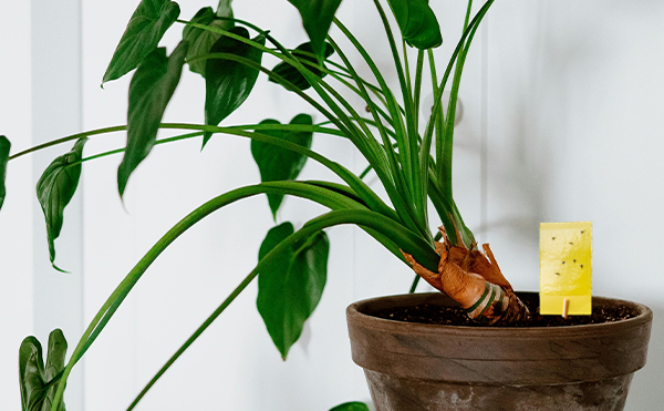 A simple but effective way to cut down fungus gnat numbers is to use yellow sticky traps. Push them into the soil of a houseplant or place them near a terrarium. The bright yellow colour attracts the flies like a magnet. Once they land, they stick firmly to the trap. This mainly targets adult gnats and prevents them from laying new eggs. On their own sticky traps won’t wipe out a full infestation, but they’re a handy way to reduce the nuisance quickly when used alongside other measures.