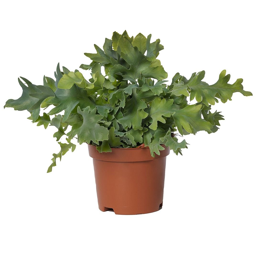 De Phlebodium aureum, ook wel Zinkvaren of Blauwvaren genoemd, is een luchtige kamerplant met blauwgroene, golvende bladeren. Deze varen is sterk, luchtzuiverend en perfect voor een plek met iets minder licht.